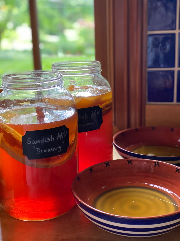 Kombucha is a refreshing drink we almost always have with lunch. I make it in batches, two gallons at a time, but this recipe has the ingredients for one gallon. Kombucha is a tea that is fermented with the help of sugar and a SCOBY. (SCOBY stands for Symbiotic Culture Of Bacteria and Yeast). There is much written about kombucha and it’s health benefits, but I’m leaving that up to the experts to explain.