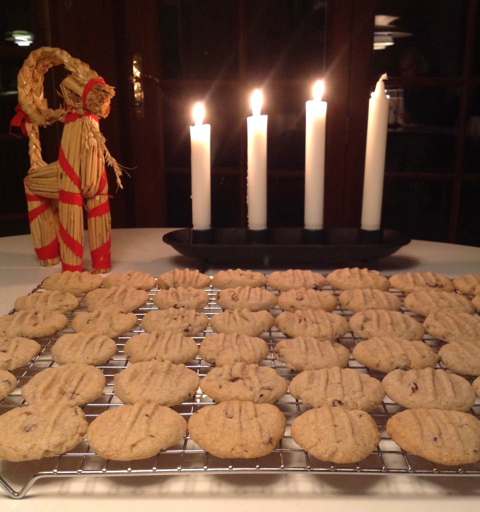 Beat the butter and sugar until smooth. Add the egg, raisins, cinnamon, psyllium husk, and the flour mixed with the baking soda. Roll the soft dough into tiny balls and put them on a parchment paper covered baking tray. Flatten the cookies with a fork.