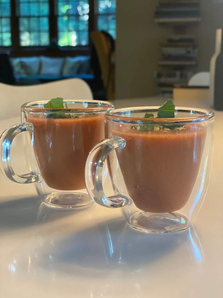 Put all the ingredients in a blender. Blend on high until smooth. Taste the soup and add more salt, pepper and tabasco if needed.