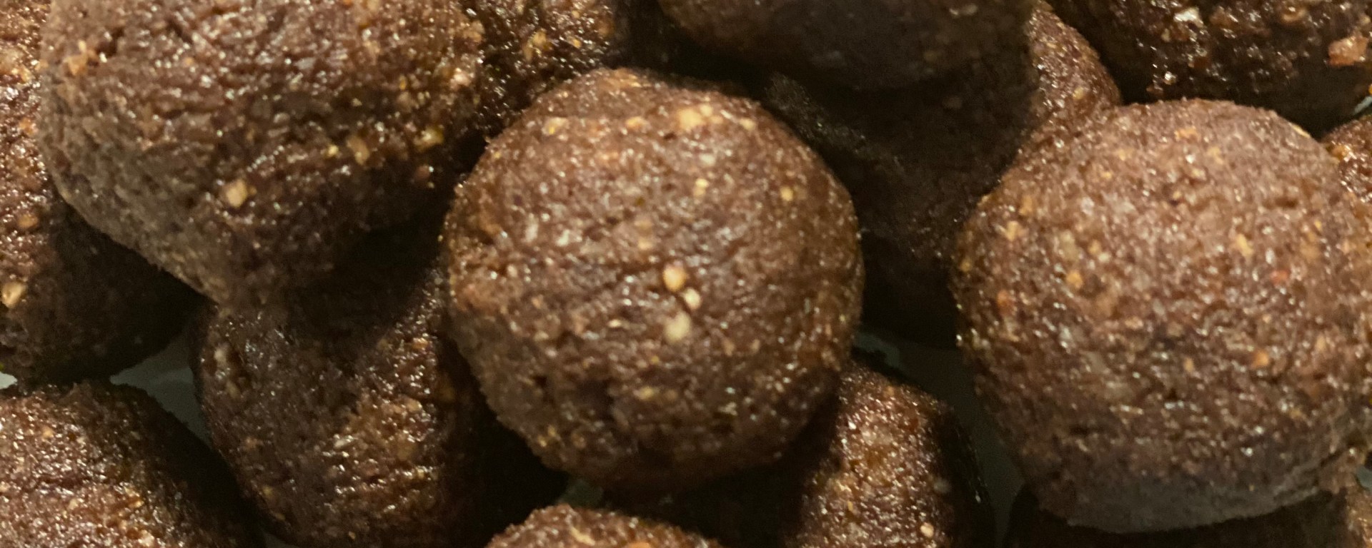 Put all the ingredients in a food processor and mix for a couple of minutes. Roll the mix into balls and put them in the fridge. Freezes well.