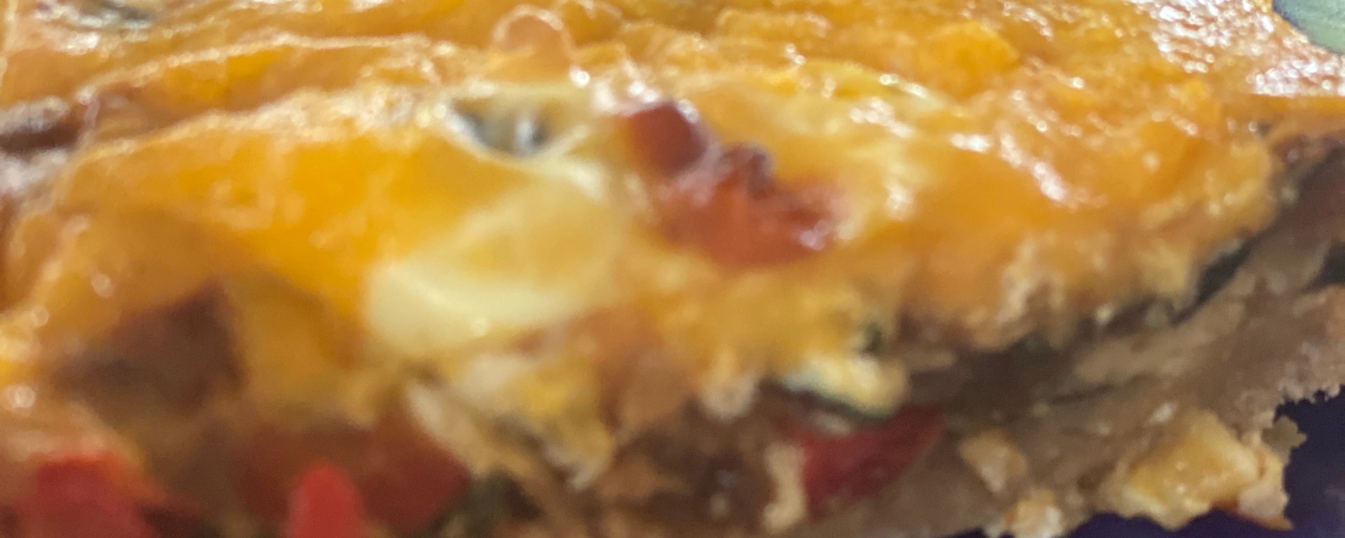 Add the filling from the frying pan to the baked pie shell. Sprinkle with the cheese and last pour the egg mix over the filling. Bake for 15-20 minutes or until the egg mix is firm. Serve with a salad on the side.
