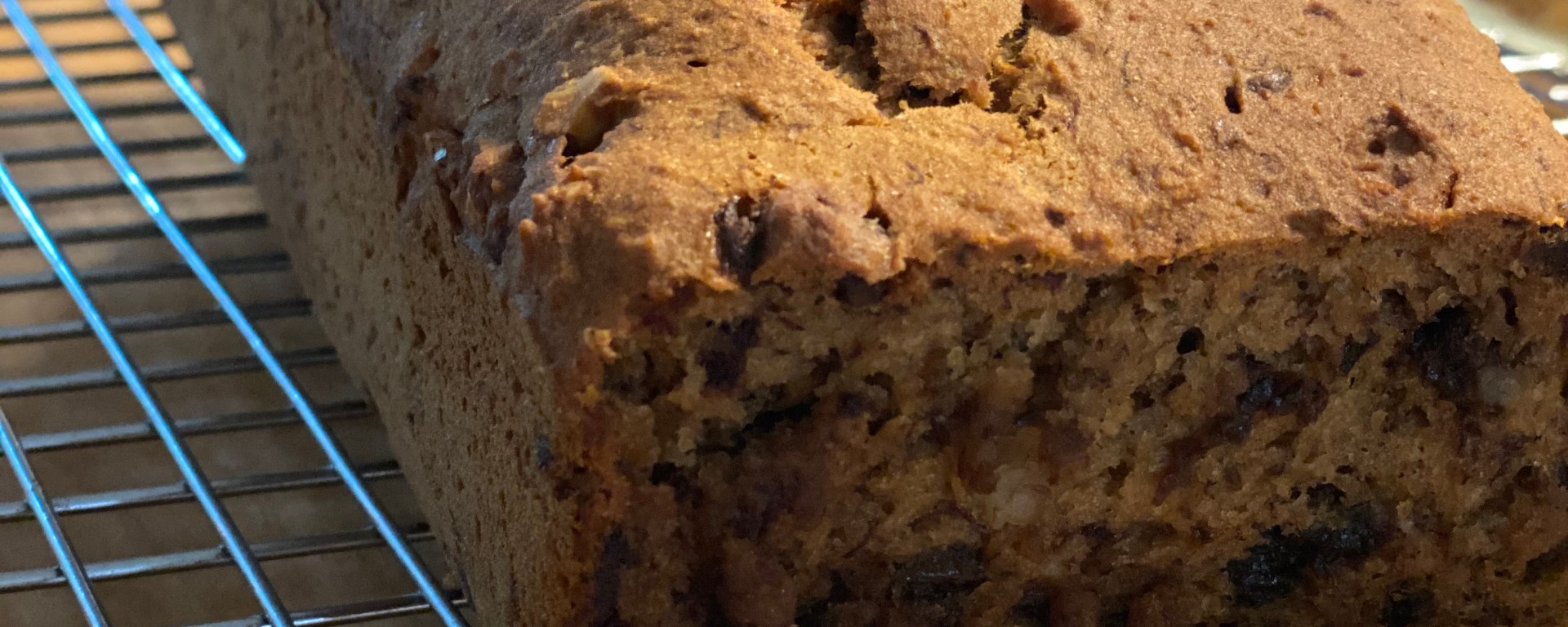 Put all the dry ingredients in a bowl. Add the melted coconut oil, vanilla extract and the mashed bananas. Mix it well before pouring the batter into a greased loaf pan.