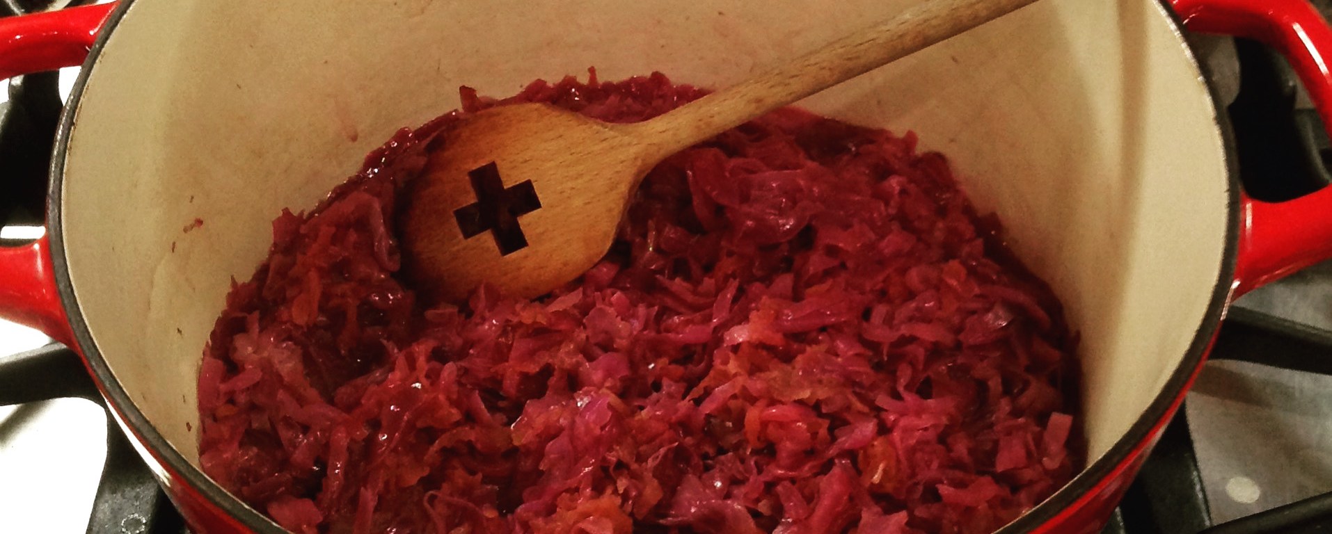- One head (2.2 lbs/1 kg) red cabbage, finely sliced