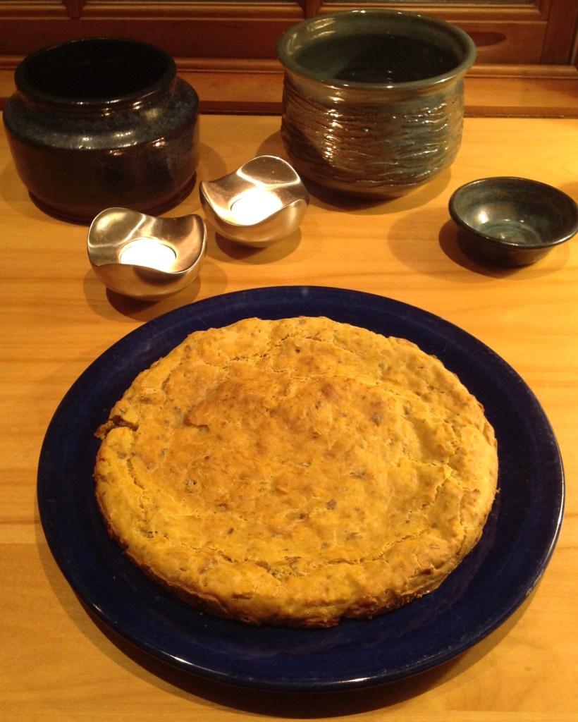 Line the bottom of a spring form (9″/23 cm diameter) with a parchment paper and grease the sides of the form. Pour in the batter and bake in the lower part of the oven for 60 minutes.